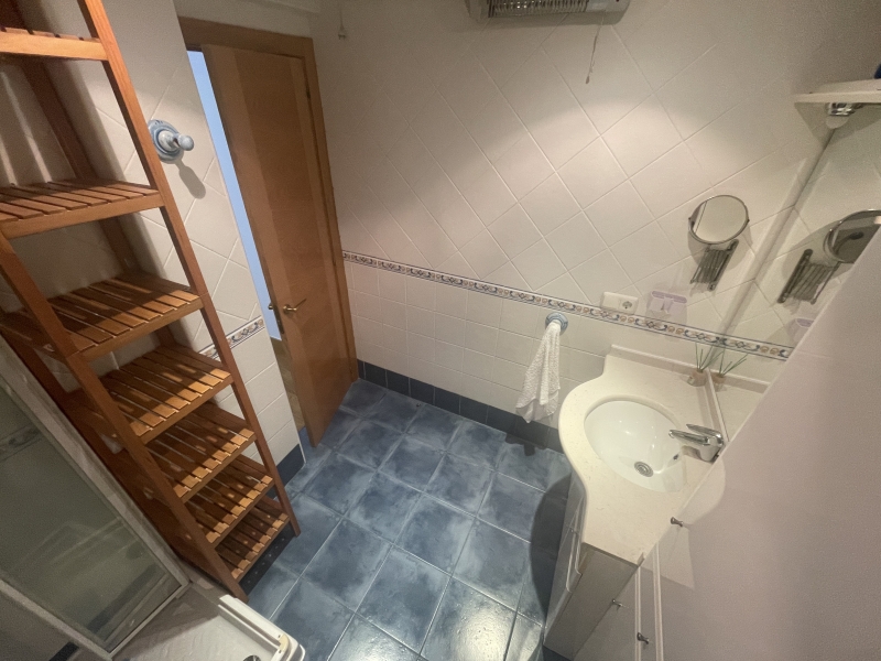 El baño, renovado y equipado con ducha moderna.